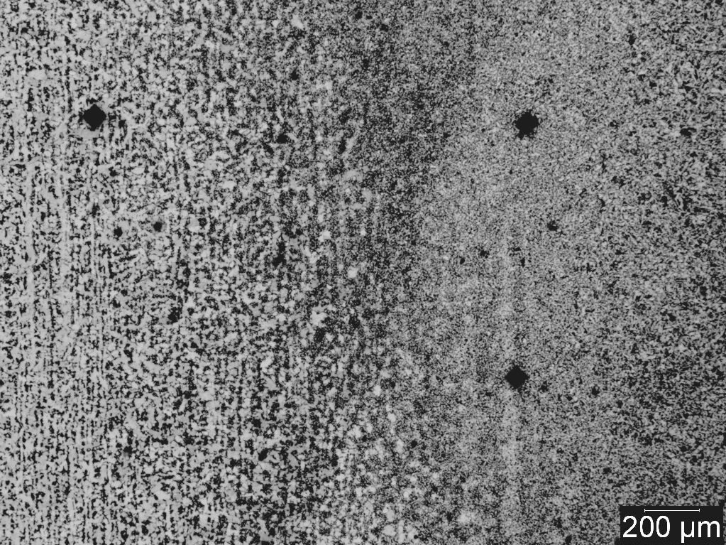 For microhardness, PMI Specialists performs automatic Vickers and Knoop microhardness testing with indentation loads from 0.1 to 10 kg based on ASTM standard E384. Microhardness is considered non-destructive compared to Rockwell or Brinell testing. It is very useful on small sized samples or coatings. Microhardness is also extensively used to characterize case hardening properties, carburization depth, secondary phase particles and weld profile (weld metal, heat affected zone and base metal).